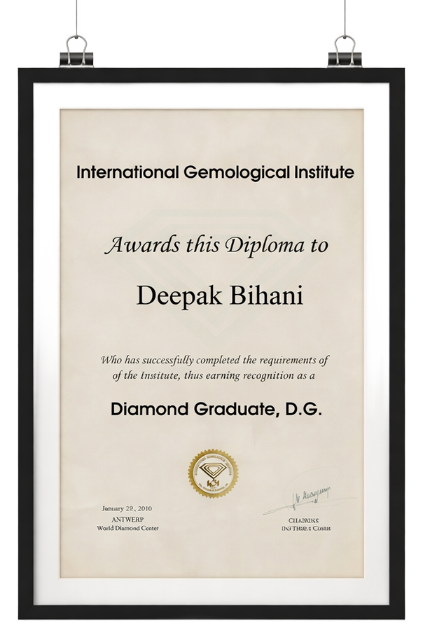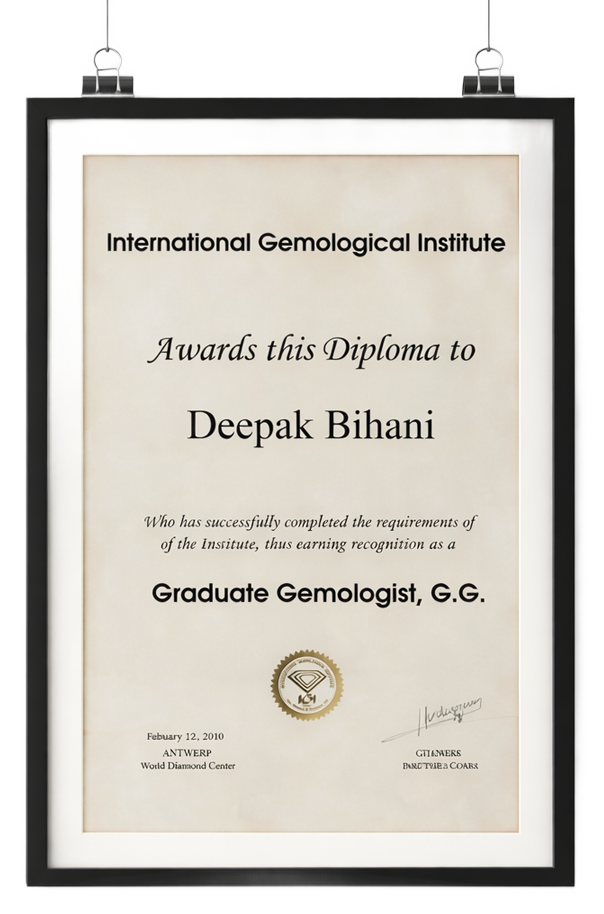 Driven by a lifelong passion for the brillinace of Gemstones and Diamonds, Deepak Bihani ventured to Antwerp,Belgium in 2010 to master the science of Gemology. After coming back he went door to door, meeting clients personally, builiding trust through sincerity, one home at a time. A man of deep faith and hard work. His work is guided by intergrity and precision. Every clasp, every prong, every stone that left his hand carries not just beauty but a promise.